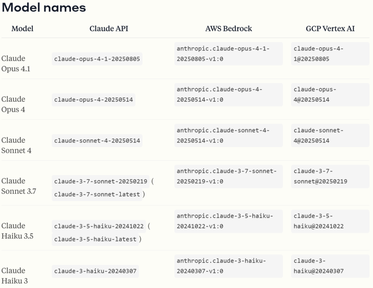 The current flagship model is Claude Opus 4.1. It’s their most capable variant yet, with multi-modal capability and a huge context window. Next in line is Claude Opus 4, just behind in capability; then Claude Sonnet 4, Sonnet 3.7, and versions like Haiku, which prioritize lower latency.